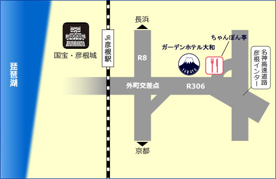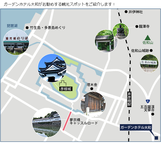 彦根駅下車 → タクシー約3分or徒歩約10分